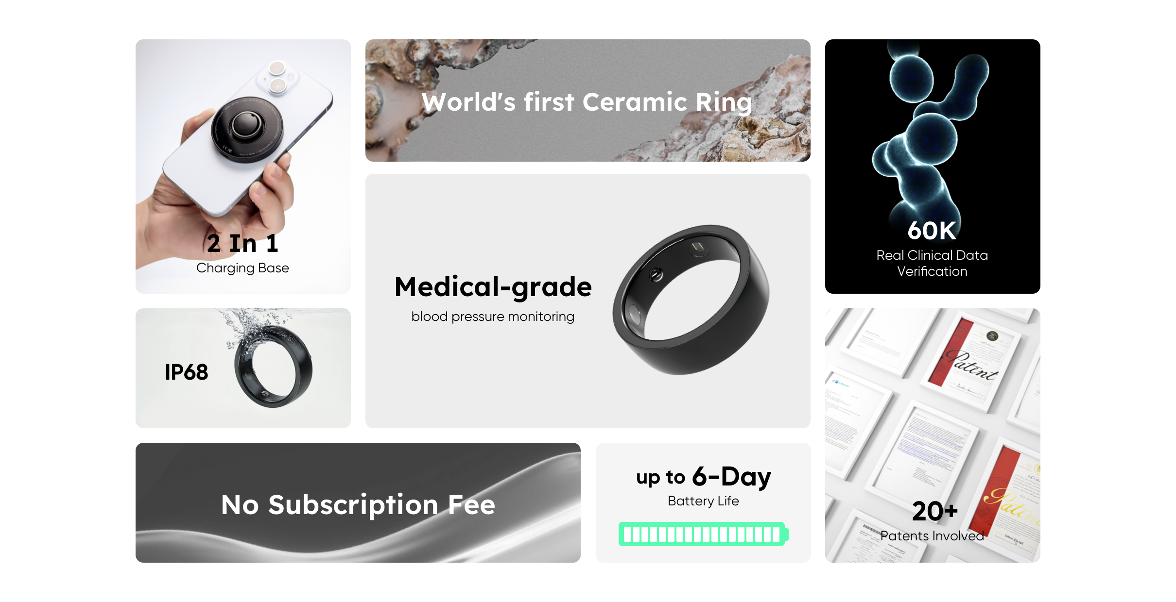 Ring X is backed by over 600,000 test data, ensuring that blood pressure measurements meet professional standards and provide you with accurate and reliable health data.
